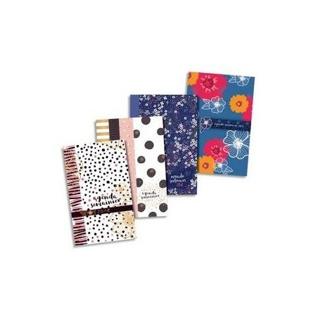 Couverture semi-rigide, pelliculage mat inrayable et vernis sélectif brillant. Stickers de communication. Grille 1 couleur sur papier blanc, large espace de notes. Informations variées et numéros d'urgence. Couvertures assorties. For Me.