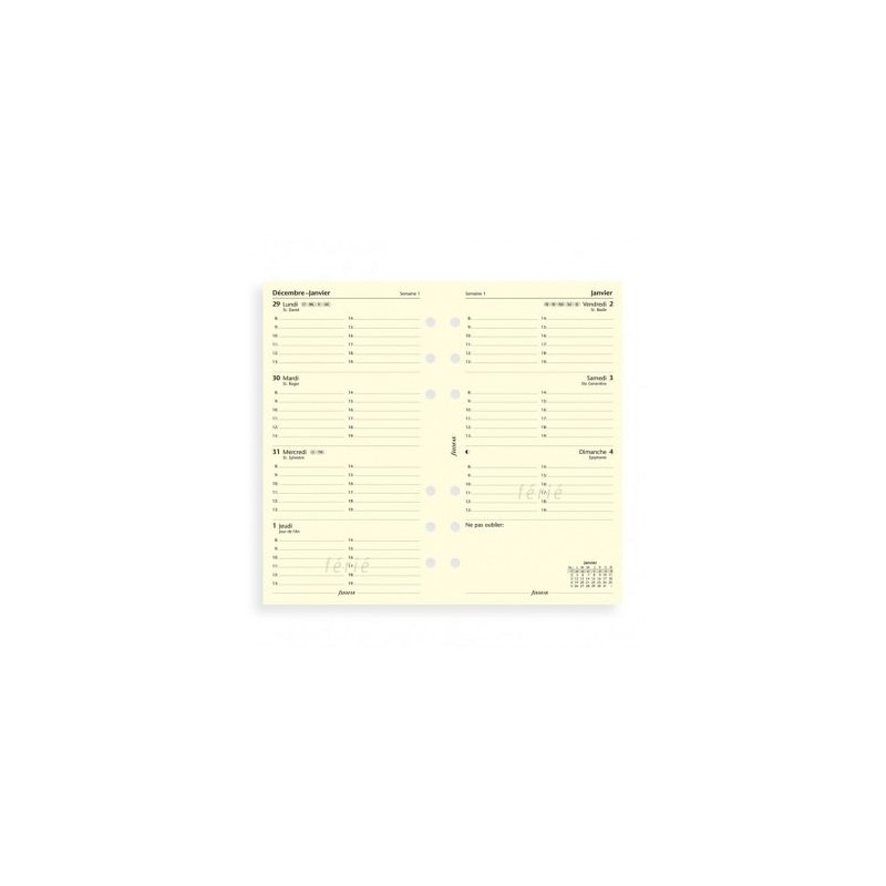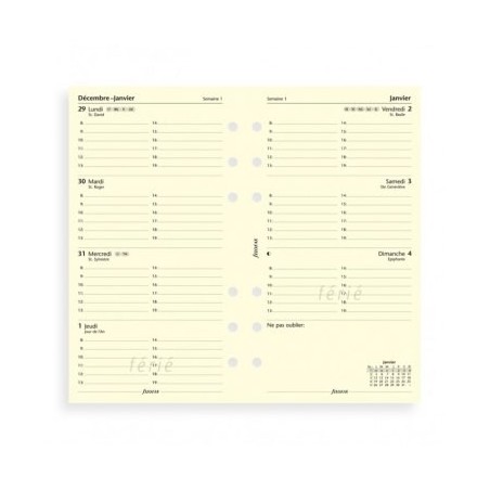 De janvier à décembre. A l'horizontal. Papier ivoire. Ligné. Recharge Filofax.