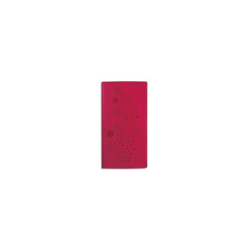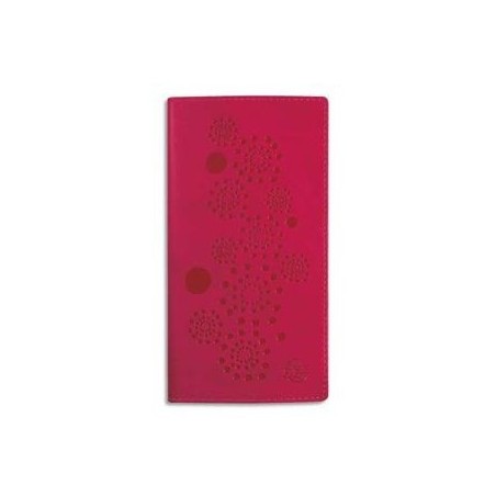 Couverture amovible en synthétique lisse, finition piqûre sellier, décor par marquage thermovirant. Grille féminine, une couleur différente par trimestre, 1 semaine sur 2 pages avec large espace notes, pages d'informations.. Papier blanc. Couvertures assorties : orange, bleu, violet, rose. Lady Flora.