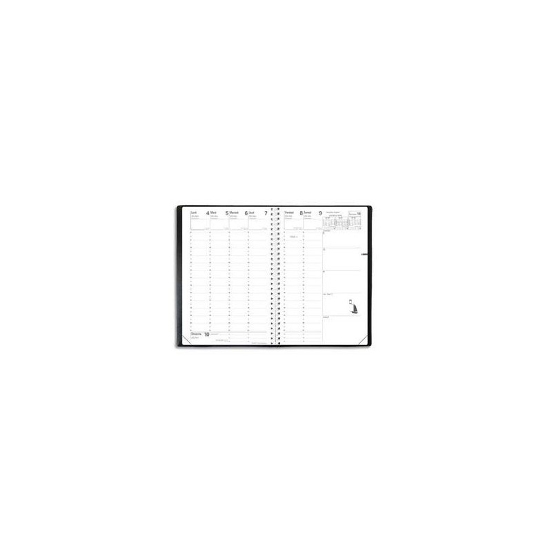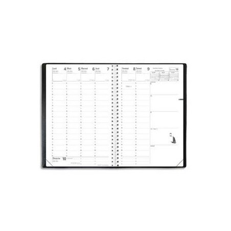 QUO VADIS Semainier Ministre spiralé 1S/2P avec Atlas papier blanc, format 16 x 24 cm couverture Impala noire