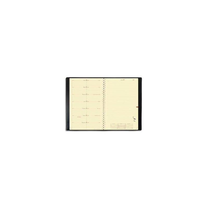 12 mois de janvier à janvier. Papier ivoire. 1 semaine sur 1 page avec 1 page de notes en vis-à-vis. Reliure spiralée plastique. Note 24S.