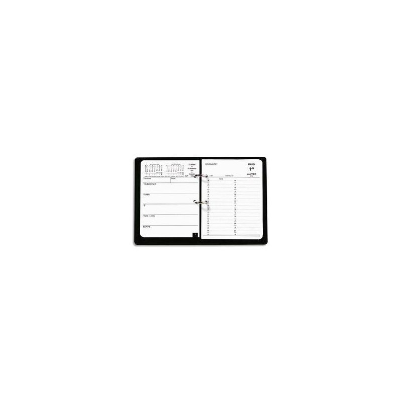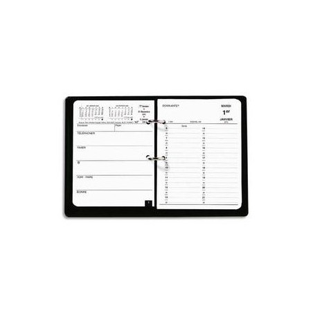 Socle en plastique fumé. Format 24 x 17 cm. Bloc 11,5 x 14,5 cm. 1 jour par page + 1 page de notes. Recharge pour bloc planning.