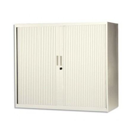 MT INTERNATIONAL Armoire basse métal monobloc Corps et Rideaux beige 2 tablettes - 120 x 105 x 43 cm