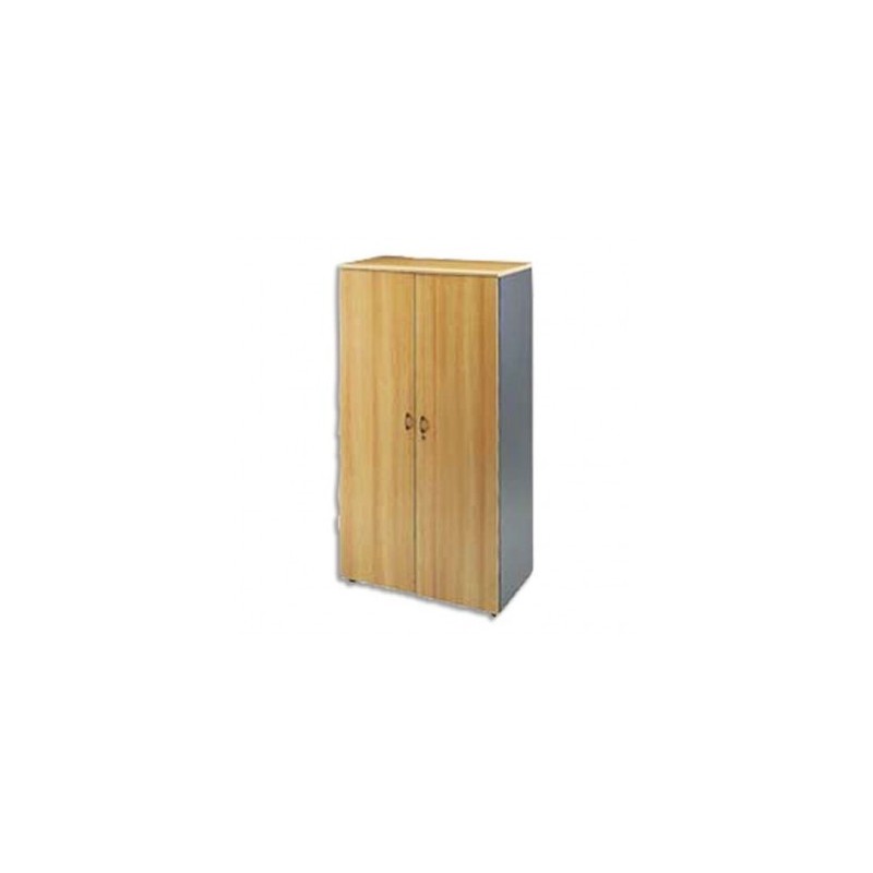 MT INTERNATIONAL Armoire haute portes pleines 1 tab. fixe+3 amovibles hêtre antharcite L90x H180x P48 cm