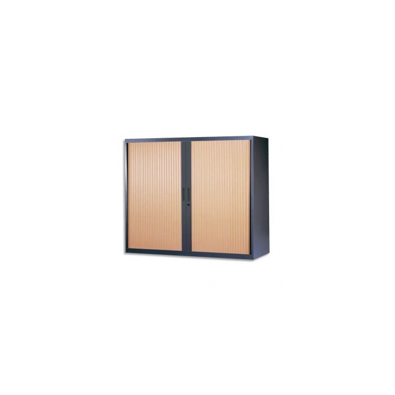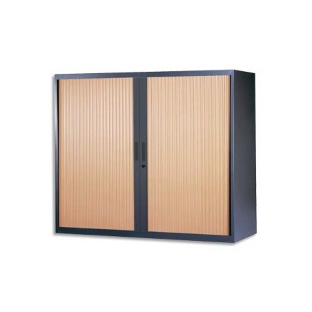 MT INTERNATIONAL Armoire basse métal monobloc Corps anthracite / Rideaux hêtre 2 tablettes - 120 x 105 x 43 cm