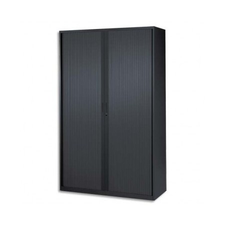 MT INTERNATIONAL Armoire haute métal monobloc Corps et Rideaux noir 4 tablettes - 120 x 198 x 43 cm