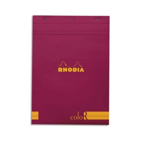 RHODIA Bloc coloR agrafé en-tête 22,5 x 29,7 cm 140 pages lignées. Couverture rembordée framboise
