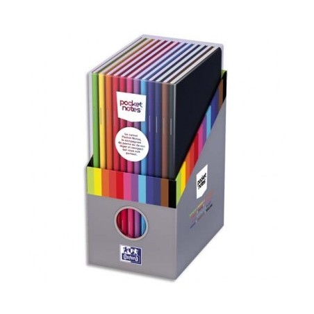 OXFORD Boîte cadeau de 12 carnets POCKET NOTES agrafé 9 x 14 cm 48 pages ligné 6 mm. Couvertures cartes assorties