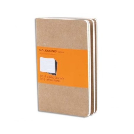 MOLESKINE Set de 3 cahiers carton 9 x 14 cm 64 pages lignées. Coloris kraft