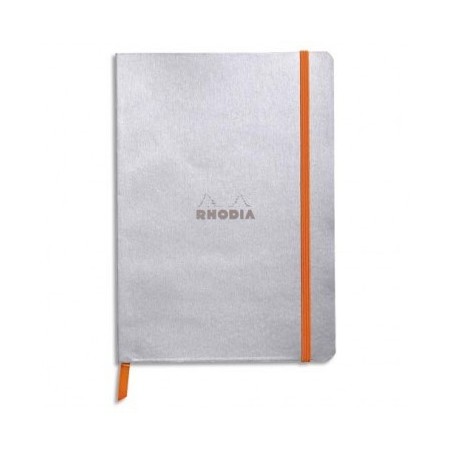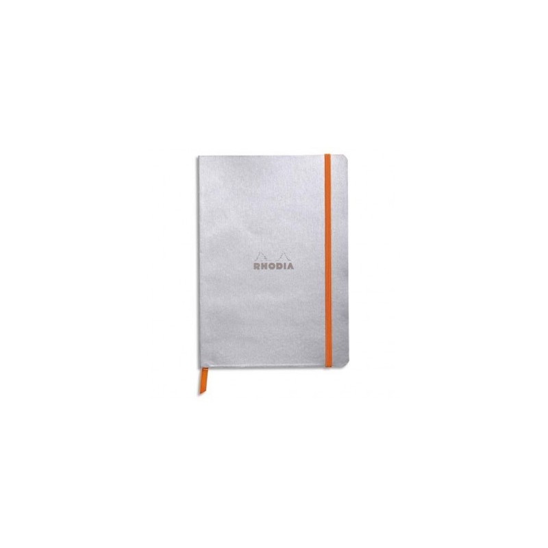 RHODIA Carnet Rhodiarama 14,8 x 21 cm 160 pages lignées. Couverture simili-cuir gris Argent Fermeture élastique