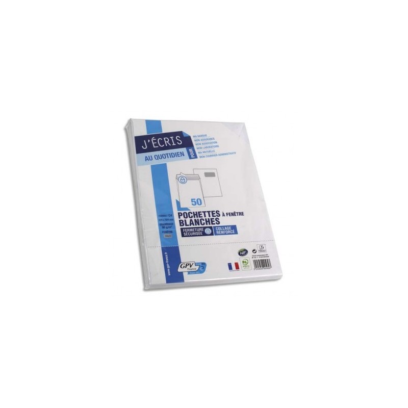 GPV Paquet de 50 pochettes vélin blanc auto-adhésives 90g format C4 229 x 324 mm fenêtre 50 x 100 mm
