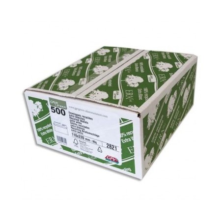 GPV Boîte de 500 enveloppes recyclées extra blanches Erapure, format DL 110 x 220 mm 80g