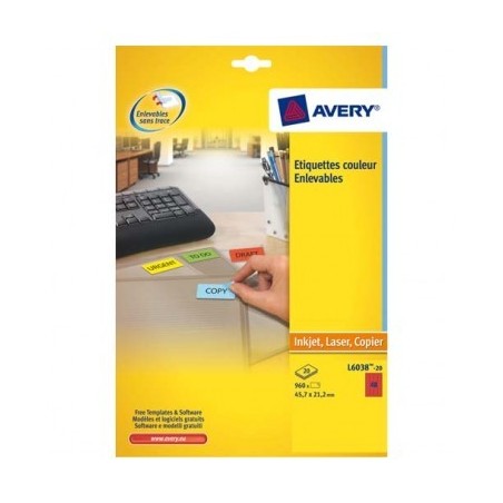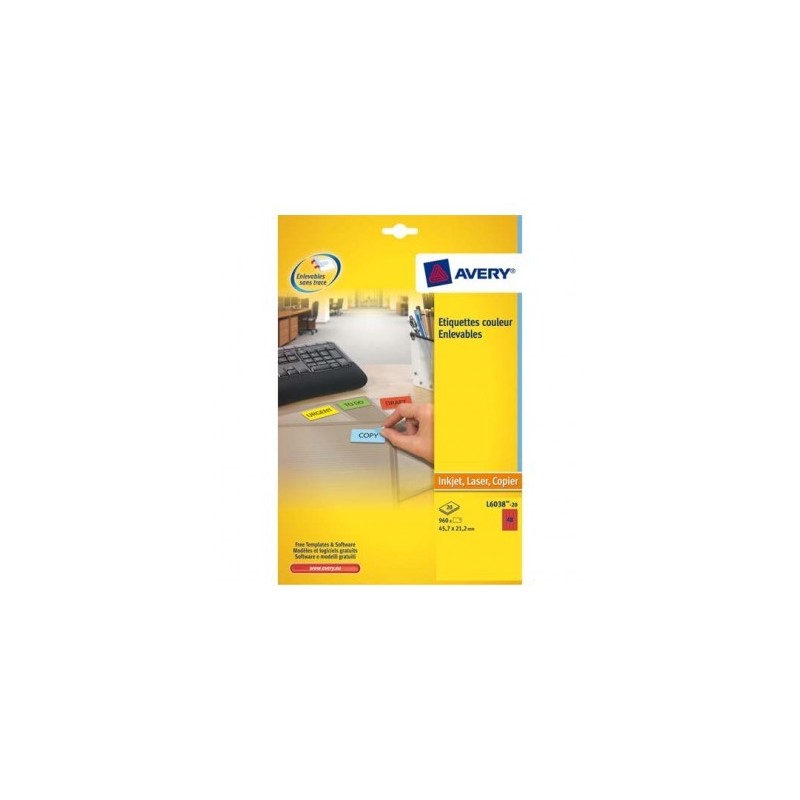 AVERY Boîte de 960 étiquettes laser 45,7 x 21,2 mm rouge L6038-20