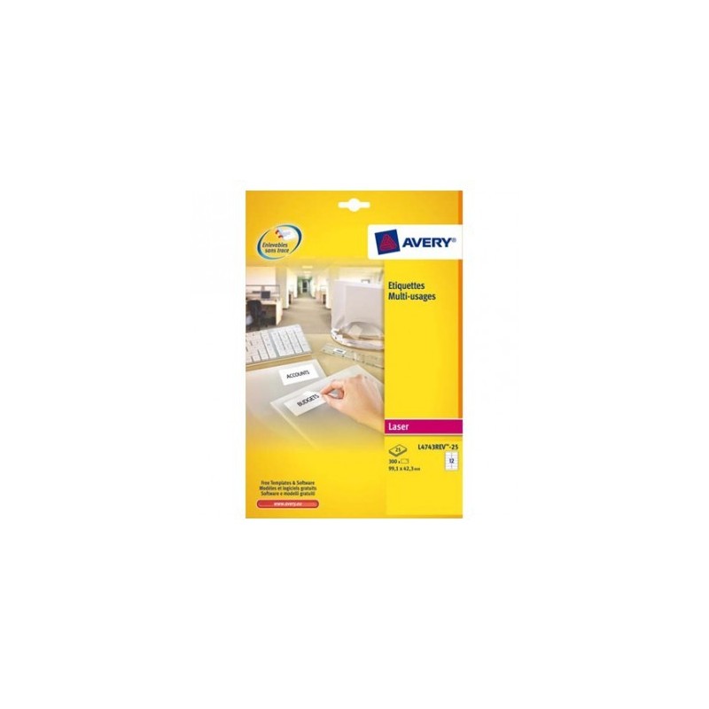 AVERY Boîte de 25 étiquettes laser enlevable 21 x 29,7 cm L4735REV-25