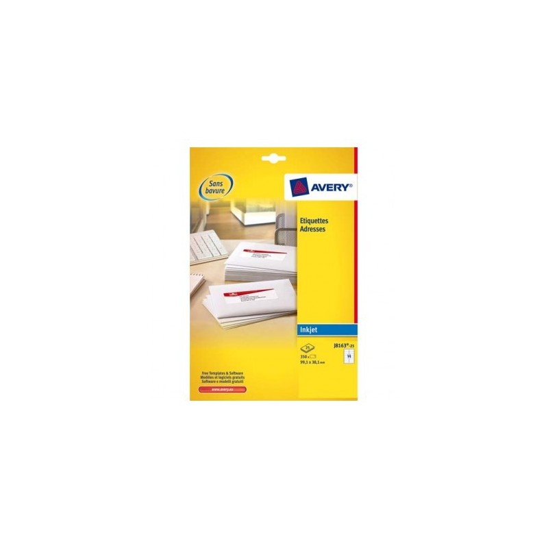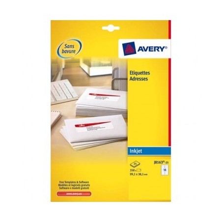 AVERY Boîte de 350 étiquettes adresses jet d'encre 99,1 x 38,1 mm blanches J8163-25