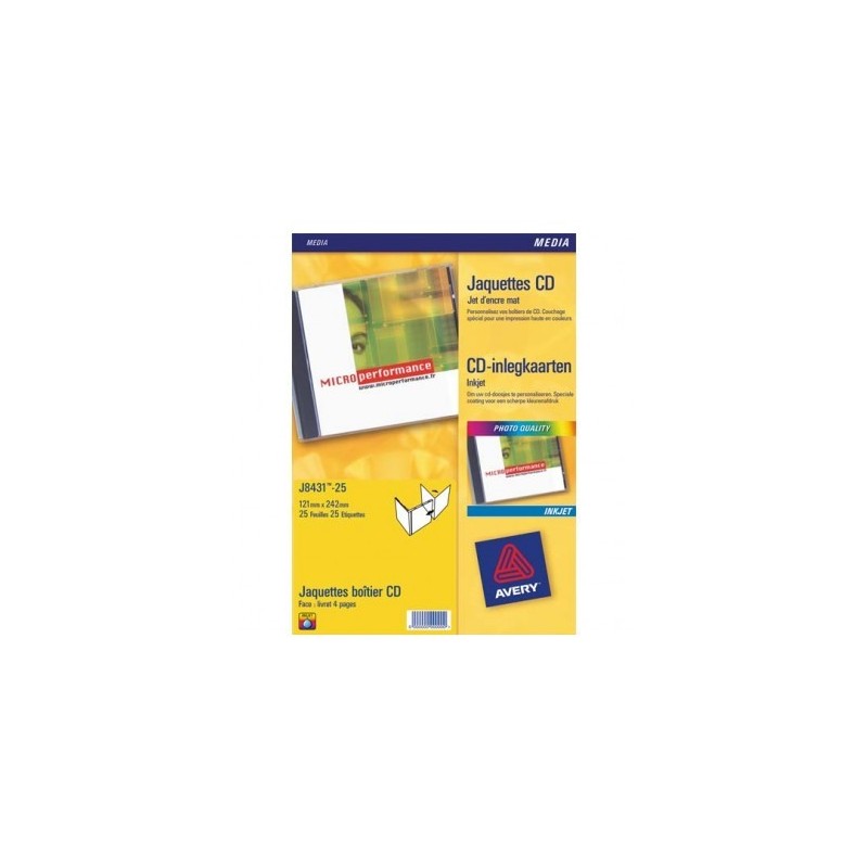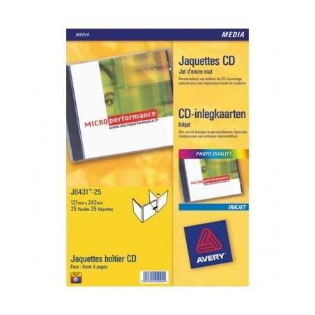 AVERY Boîte de 50 étiquettes jet d’encre monochrome pour CD et DVD J8676-25