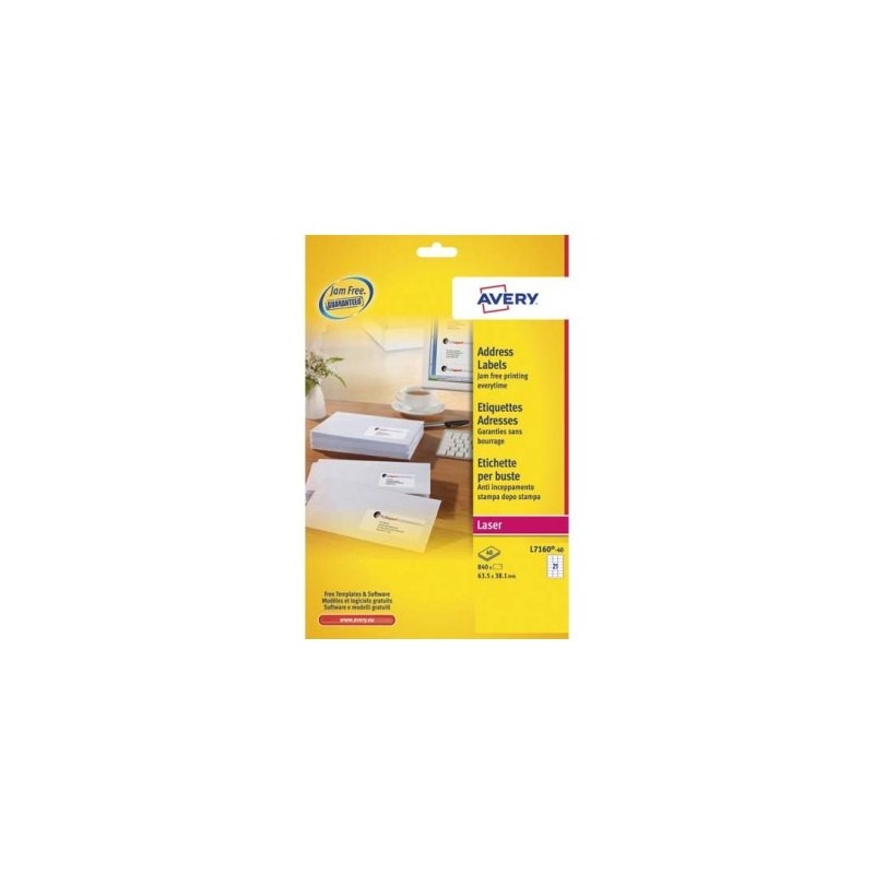 AVERY Boîte de 840 étiquettes laser blanc 63,5 x 38,1 mm L7160-40