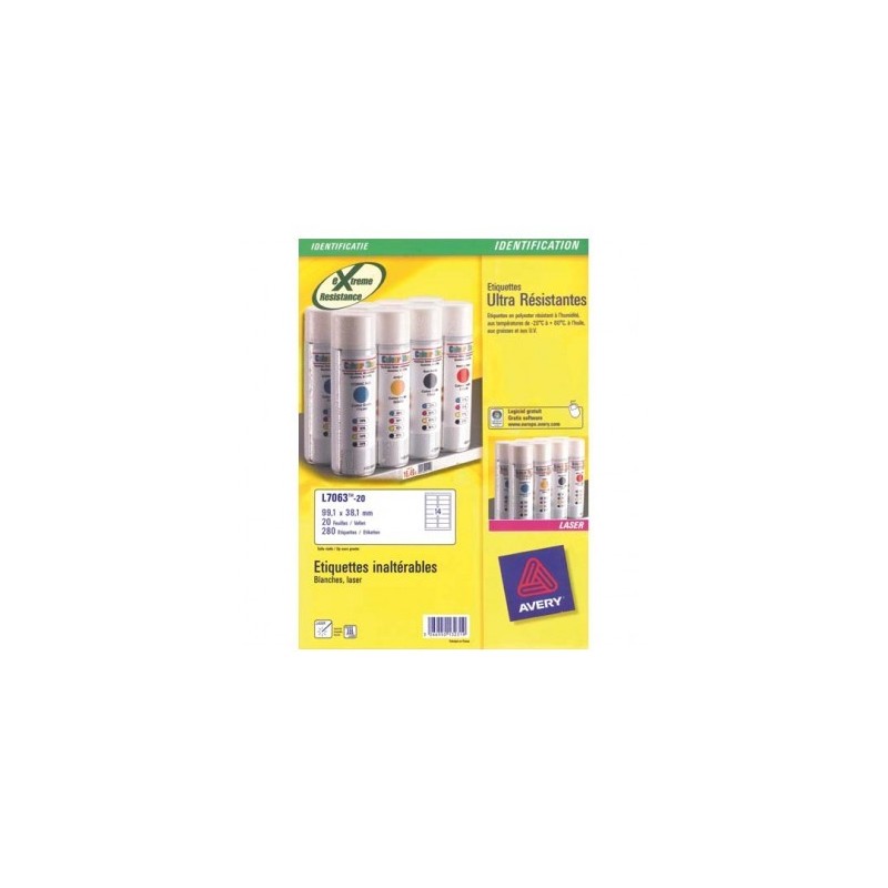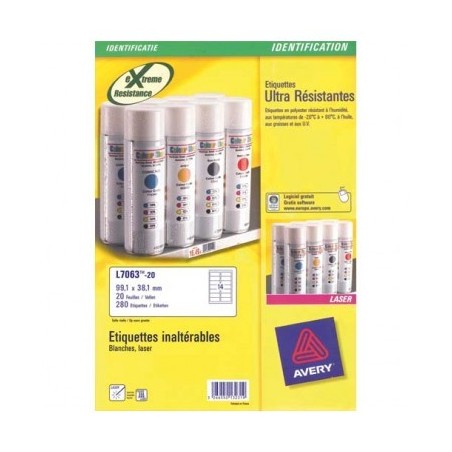 AVERY Boîte de 280 étiquettes laser inaltérables blanches 99,1 x 38,1 mm L7063-20