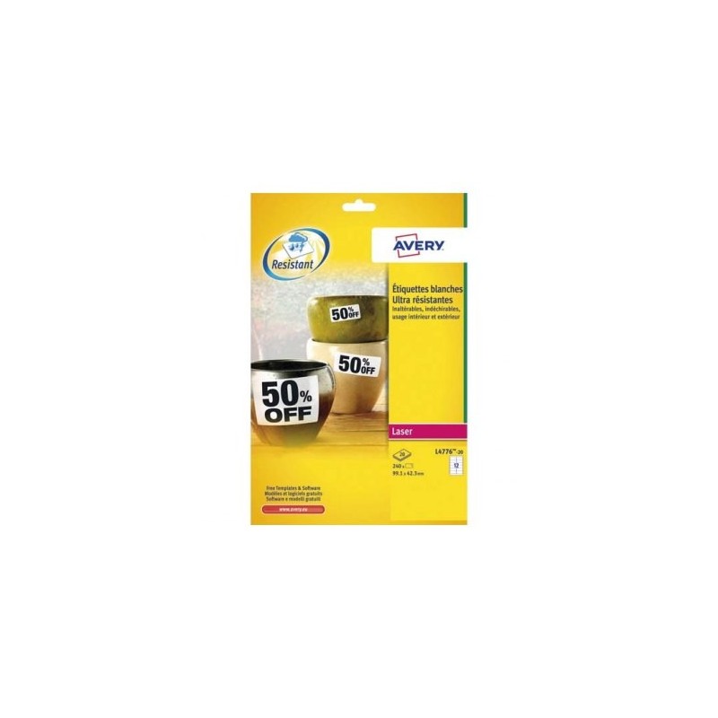 AVERY Boîte de 240 étiquettes laser inaltérables blanches 99,1 x 42,3 mm L4776-20