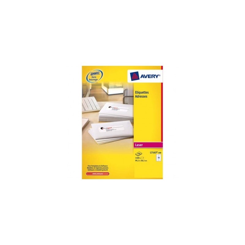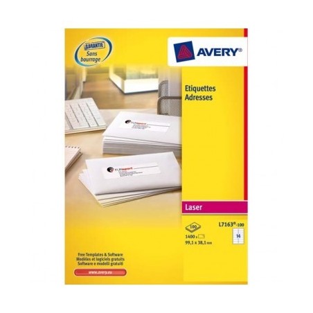 AVERY Boîte de 1400 étiquettes laser blanc 99,1 x 38,1 mm L7163-100