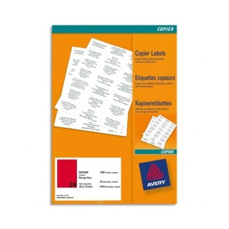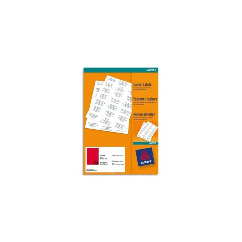 AVERY Boîte de 2400 étiquettes copieur 70 x 35 mm rouge fluo DP24R-100