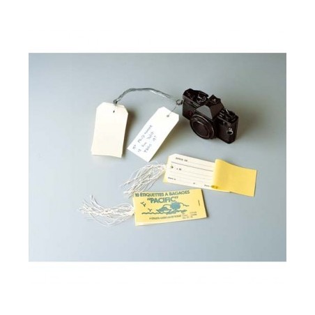 En carton coloris blanc. Deux coins coupé (coté oeillet). Format 120 x 60 mm. Distribution à l'unité. Oeillet de renforcement et fil de fer de fixation. Les étiquettes américaines sont indispensables pour étiqueter, vos matériels, vos textiles et articles divers. Identifiez vos bagages et autres objets.