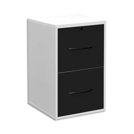 MT INTERNATIONAL Classeur mélaminé 2 tiroirs pour dossier suspendu blanc, façade tiroir noir 42 x 69 x 44 cm