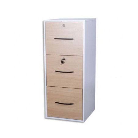 MT INTERNATIONAL Classeur mélaminé 3 tiroirs pour dossiers suspendus blanc, façade tiroir hêtre 42 x 101 x 44 cm