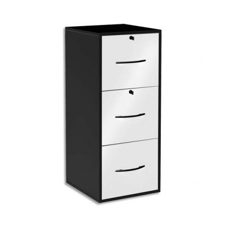MT INTERNATIONAL Classeur mélaminé 3 tiroirs pour dossier suspendu noir, façade tiroir blanc 42 x 101 x 44 cm