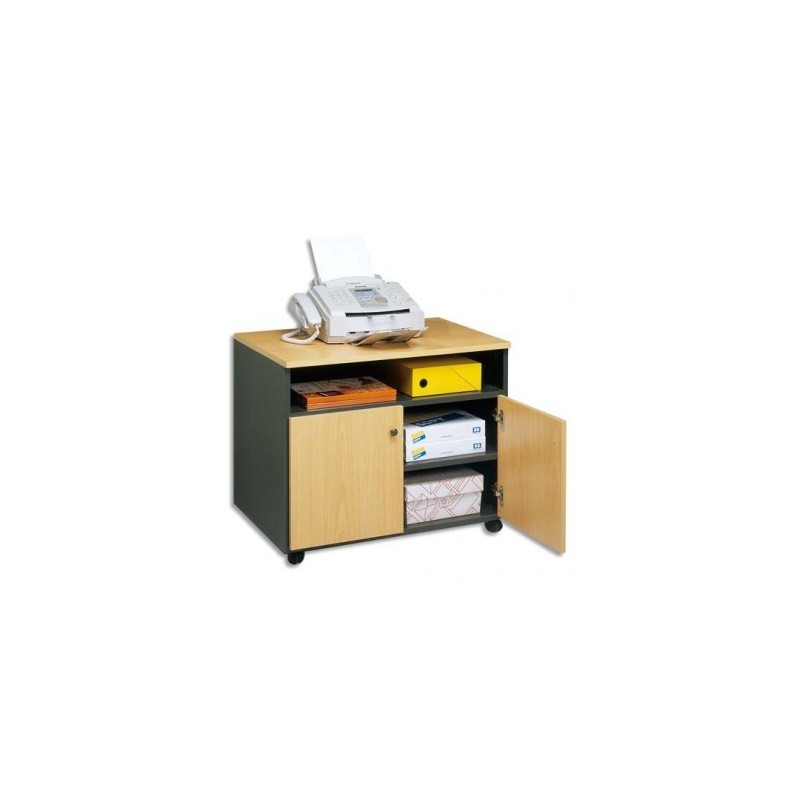 SIMMOB Meuble photocopieur 2 portes + tablette et niche coloris hêtre / anthracite