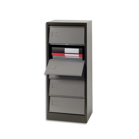 Système de rangements à clapets permettant de classer des dossiers à plat. Les colonnes à clapets sont équipées d’une fermeture magnétique. Les portes horizontales sont articulées sur axe invisible à panneau incliné et avec poignée roulée. Construction soudée monobloc épaisseur 7/10e avec socle en tôle galvanisée. Porte-étiquette embouti sur chaque porte. Dimensions utiles de chaque case (l x h x p) : 38,3 x 15,8 x 28,3 cm. Pour un classement très pratique !