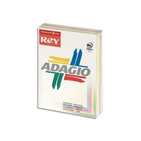 REY BY PAPYRUS Ramette 100 feuilles x 5 teintes ADAGIO 80g format A4 assortis pastel et vif