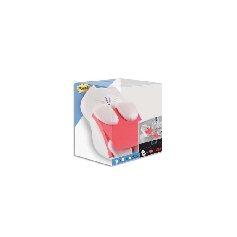 POST-IT Dévidoir Z-Notes design chat avec 1 bloc Z-Notes 90 feuilles 76x76 mm jaune. Livré en boite