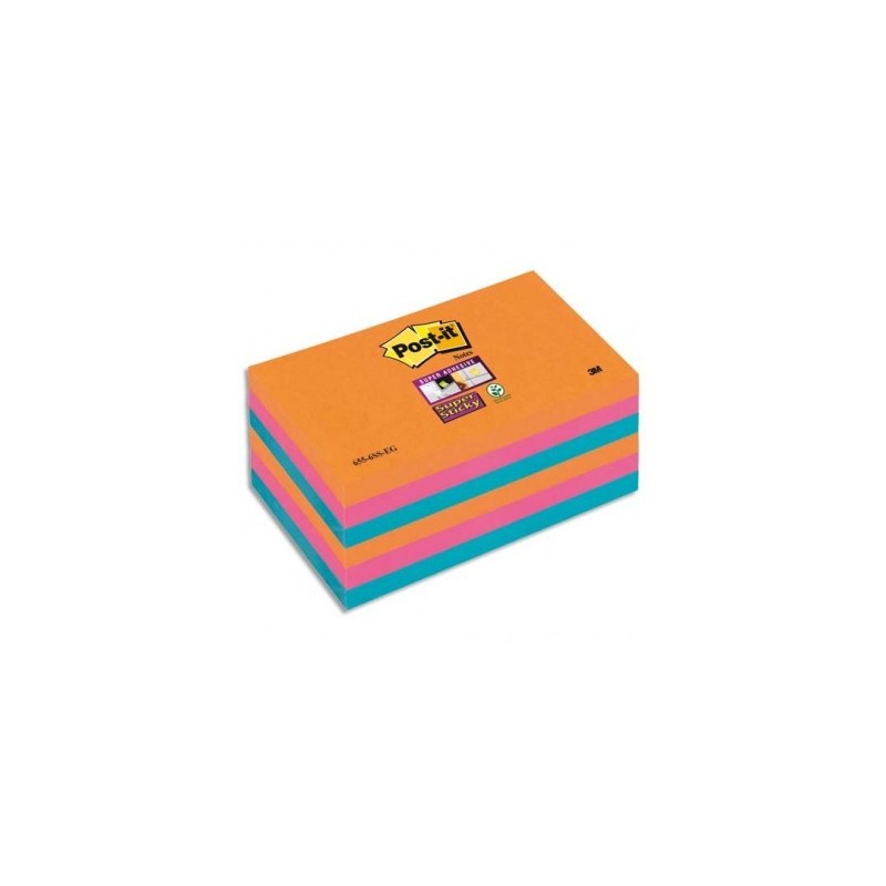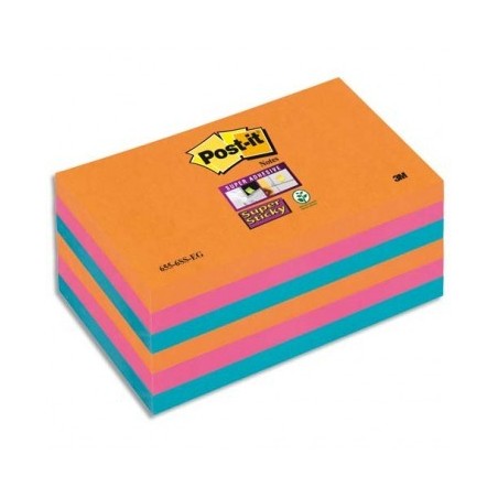 POST-IT Lot 6 blocs repositionnables Sticky Pétillantes 76 x 127 mm coloris assortis néon