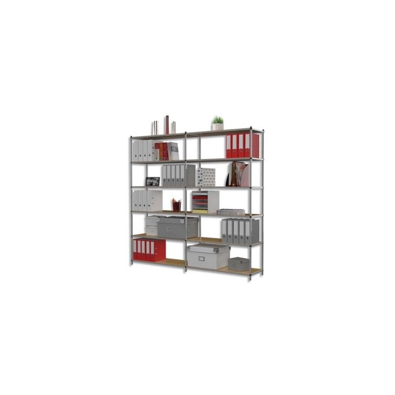 Structure en acier finition époxy gris. 6 tablettes en isorel épaisseur : 3 mm. Intervalle entre tablettes : 36 cm. Charge utile : jusqu’à 80 Kg par tablette. 6 niveaux pour classeurs à levier. Livré à plat, montage facile par simple emboîtement. Possibilité d’ajouter un ou plusieurs éléments pour constituer des rayonnages illimités. Dimensions extérieures (l x h x p) : 100 x 200 x 35 cm. Rayonnages de bureau Tubeco.