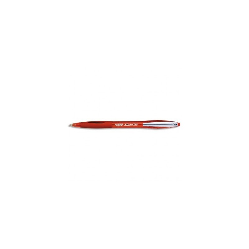 BIC Stylo bille ATLANTIS PREMIUM rétractable et rechargeable avec grip, pointe moyenne, encre rouge