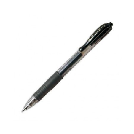 PILOT Stylo à bille pointe moyenne rétractable encre gel noire corps plastique avec grip caoutchouc G2