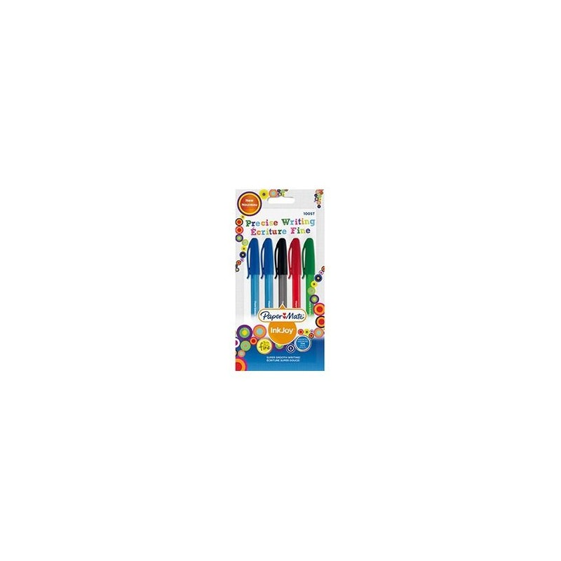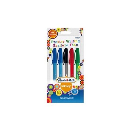 PAPERMATE Inkjoy Cap. Stylo bille à capuchon. Pointe fine. Blister de 2 bleus, 1 noir, 1 vert, 1 rouge.