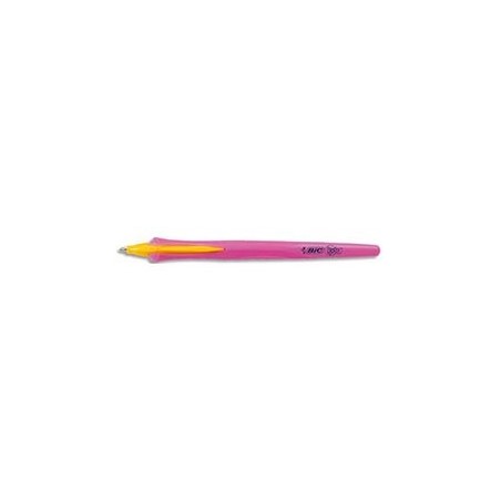 BIC Stylo bille CLIC BEGINNERS. Pointe large, encre bleue. Corps rose pour gaucher/droitier