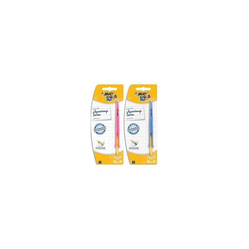 BIC Blister 1 stylo bille CLIC BEGINNERS. Pointe large. Corps bleu ou rose gaucher/droitier