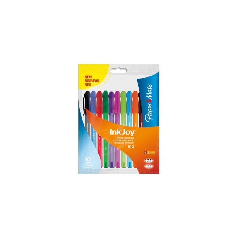 PAPERMATE Sachet de 10 stylos bille à capuchon INKJOY coloris assortis (fun)