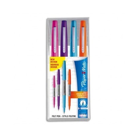 PAPERMATE Pochette de 4 stylos feutres Flair ultra fin coloris Fun : turquoise, rose, orange, violet