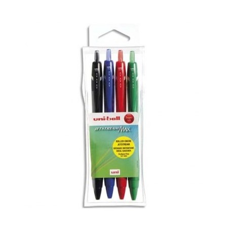 UNIBALL Pochette de 4 encre gel Jetstream 0,7 mm, pointe moyenne, coloris : noir, rouge, bleu et vert