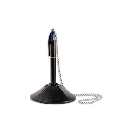 Stylo bille 4 couleurs, sur socle. 4 cartouches encre bleue. Très grande longueur durée d'écriture. Base stable et chaîne solide pour une utilisation facile. Ecriture moyenne. Idéal pour les comptoires et les bureaux!